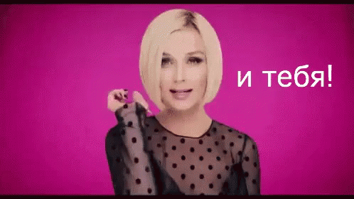 Russian singer Polina Gagarina points at the camera and says 'And you!' against a vibrant pink background.