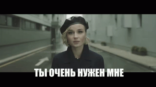 Polina Gagarina sings 'I Need You Very Much' while walking on a street, with the song's lyrics displayed.