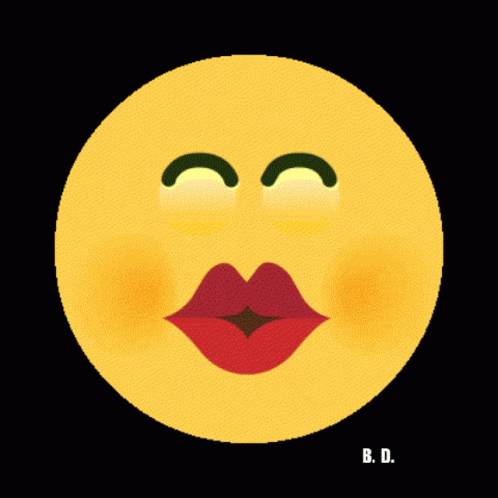 An animated yellow emoji face transitions from a kissing face with pouty lips to a happy smile.
