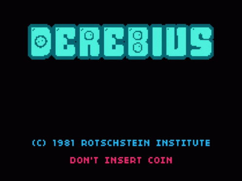 Retro arcade game screen displaying the mysterious Polybius Legend, featuring abstract graphics and a 'Don't Insert Coin' message.