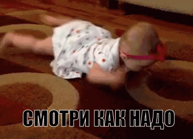 A dog demonstrates crawling to a baby on a rug, showing 'Look how to do it' in a cute and funny interaction.
