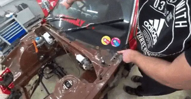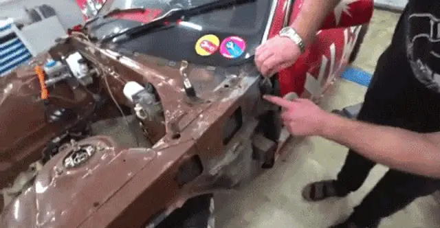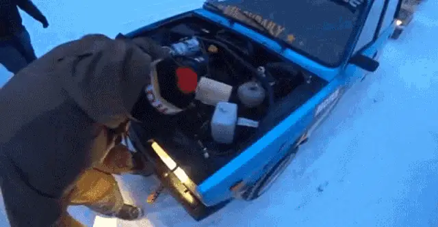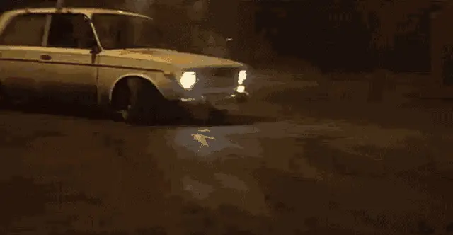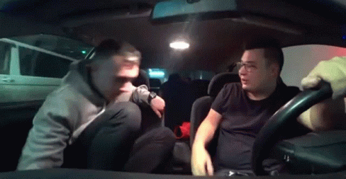 Даник and Саня quickly switch seats in a car at night, illuminated by the interior light.