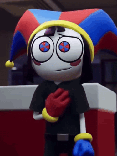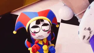 Pomni, the jester character from The Amazing Digital Circus, expresses various emotions.