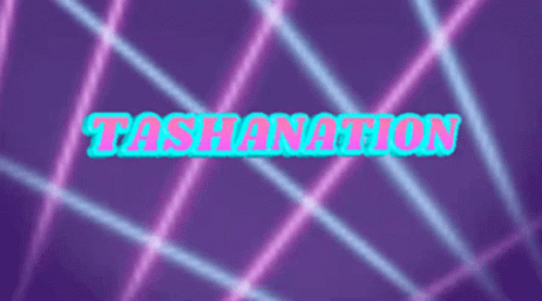 Animated intro featuring 'TASHANATION' text in pink and blue on a vibrant purple background with glowing lines.