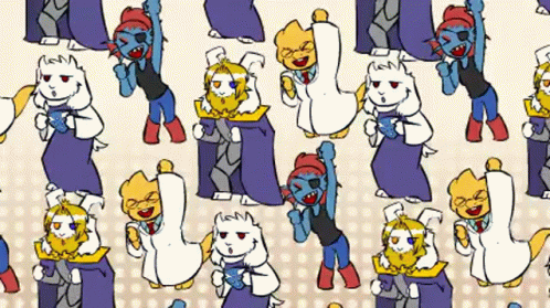 Undertale characters Sans, Papyrus, Mettaton Ex, Flowey, Toriel, Alphys, Undyne, Asgore Dreemurr perform the Popipo Dance.