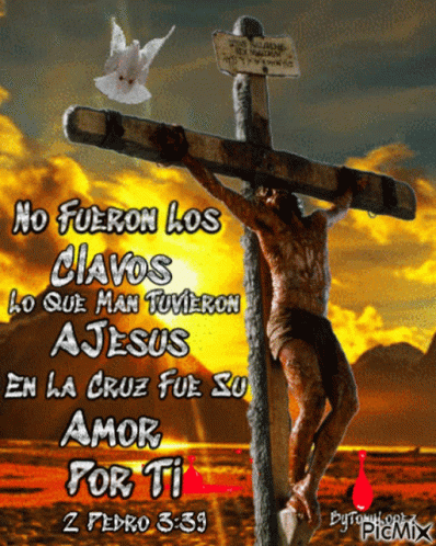 Jesus on the cross, illustrating that it was His love, not the nails, that kept Him there, referencing 2 Peter 3:39.