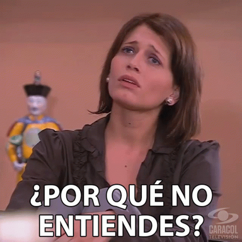 Paola Diaz as Sara asks 'Why don't you understand?' with a sad, frustrated expression from Caracol Television.
