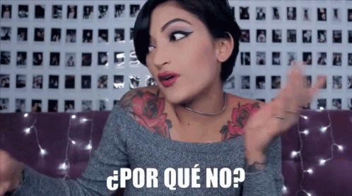 A woman with tattoos and short dark hair asks "¿Por qué no?" (Why not?), featuring content from matugarces.