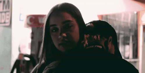 A woman wearing a Nike Pro sweatshirt hugs another person, referencing Feid's song 'Porfa'.