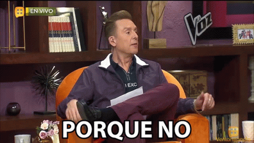 Daniel Bisogno from Ventaneando, sitting in an orange chair, with 'Porque No' text overlay.