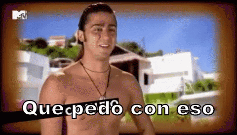 Potro Potrish, a shirtless man, reacts with 'Que pedo con eso' in a memorable moment.