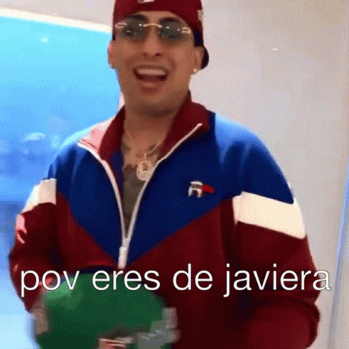 Ñengo Flow, wearing a red cap and sunglasses, gestures energetically with the text 'POV you are from Javiera' displayed.