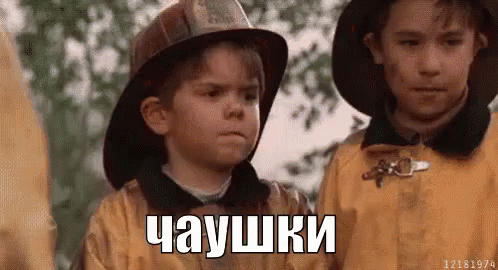 A young boy in a firefighter's hat playfully waves goodbye, standing next to another child.