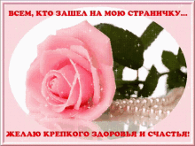 A beautiful pink rose with a heartfelt Russian message wishing strong health and happiness to all visitors.