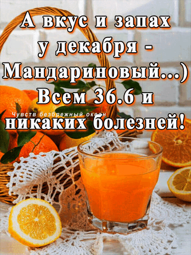 A festive December wish for health, featuring tangerines and fresh juice.