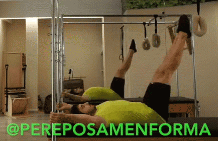 A man performs a Pilates rollover exercise on a machine, showcasing core strength with Pereposamenforma.