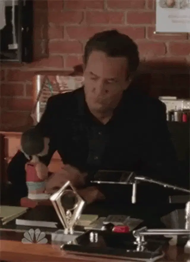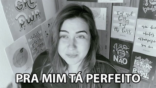 A woman confidently declares 'For me, it's perfect!' in front of empowering posters, asking if anything is crooked.