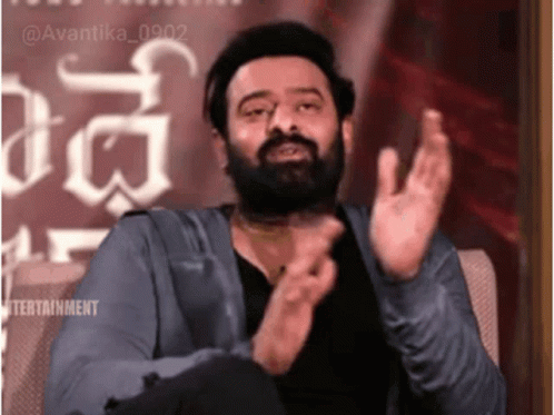 Actor Prabhas making a thank you gesture, possibly for Radhe Shyam or Vikram Aditya.
