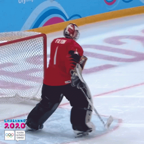 Vincent Filion, Team Canada's goalie, practices ice hockey at the Lausanne 2020 Youth Olympic Games.