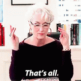 Meryl Streep as Miranda Priestly delivers her iconic 'That's all' line with a dismissive gesture.