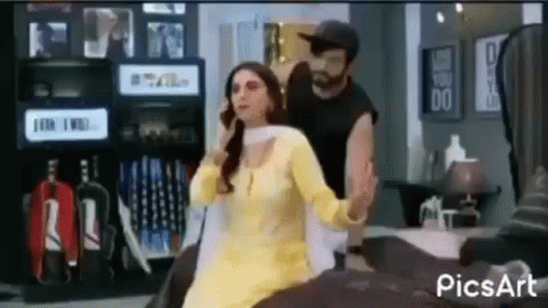 Shraddha Arya as Preeta talks on the phone while Dheeraj Dhoopar as Karan stands beside her in Kundali Bhagya.
