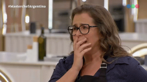 Malena Guinzburg looks worried, covering her mouth, during Masterchef Argentina.
