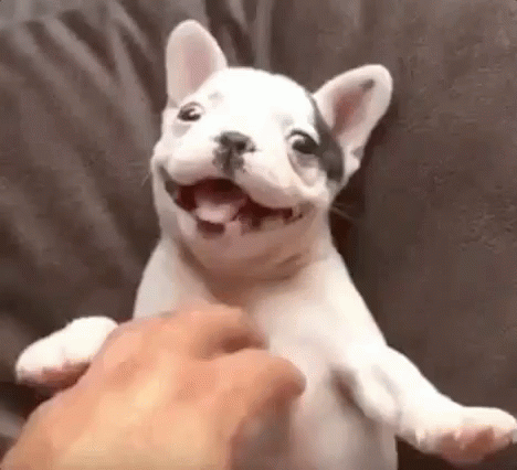 A happy French Bulldog puppy smiles brightly, celebrating the arrival of December with joy.