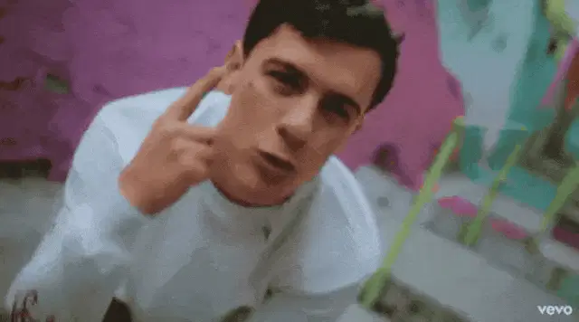 A man with a large, superimposed head throws dollar bills, in a comedic 'Presi Plata' clip.