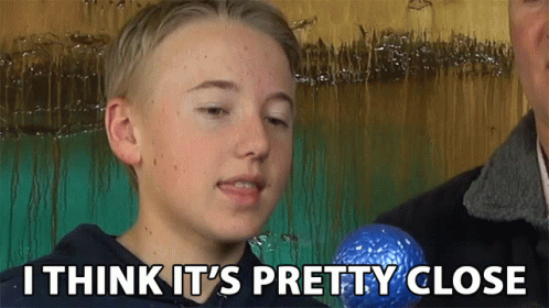 A boy from Whats Inside holds a blue ball, stating 'I think it's pretty close'.