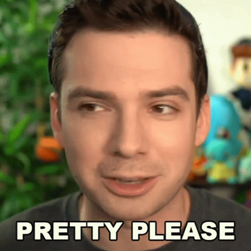 Mandjtv's close-up plea with the words 'Pretty Please' displayed on screen.
