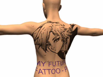 A back tattoo design featuring Michael Kaiser and Alexis Ness from Blue Lock, with text 'MY FUTURE TATTOO'.