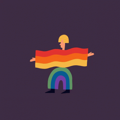 An illustration of a person embracing the vibrant colors of the rainbow, symbolizing Pride Month and LGBTQ+ equality.