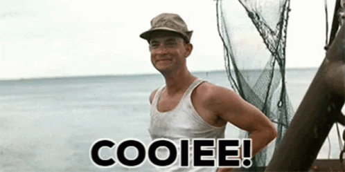 Forrest Gump (Noah C, rb1988) from Pries Logistics waves and calls 'Cooiee!' in this funny meme.
