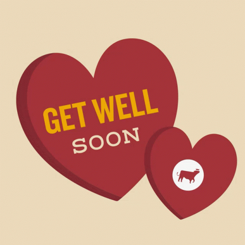 Red hearts with 'Get Well Soon' message, featuring a Primebeef Steakation cow logo.