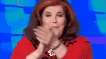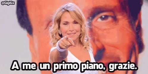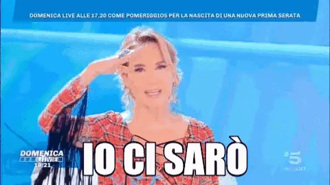 Barbara D'Urso points at the camera, asking for a close-up shot on an Italian TV show.