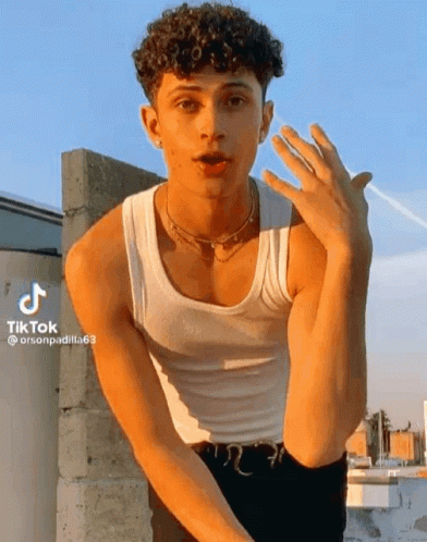 Orson Padilla, from Prive Crew, performs a dance on a rooftop, wearing a white tank top.