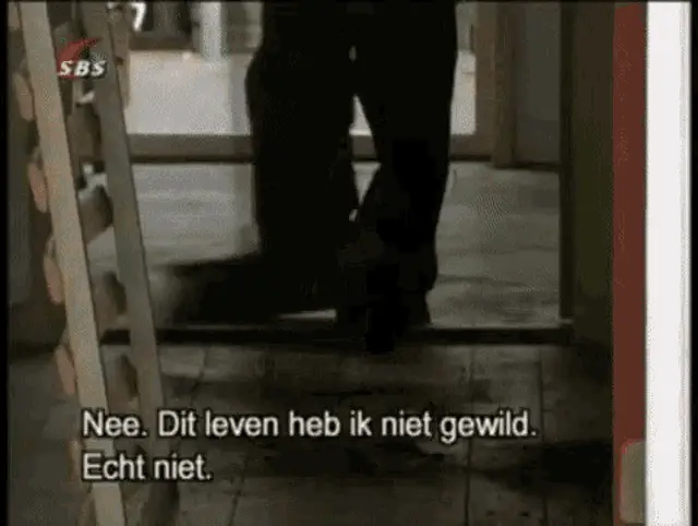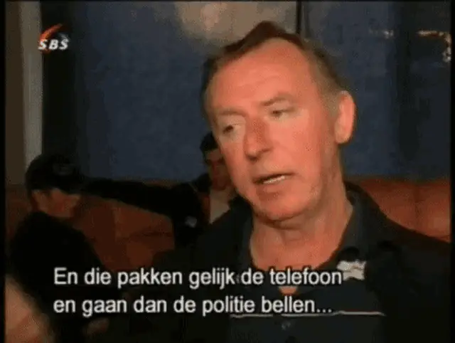 A man in the 'Probleemwijken Assen' (problem neighborhoods of Assen) takes off his pants in a room with others.