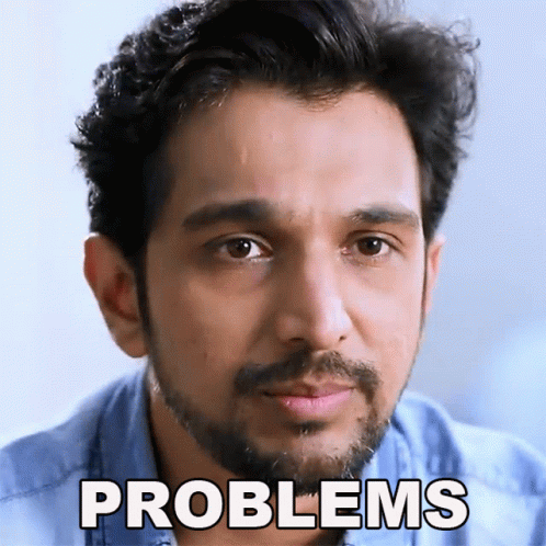 Pratik Gandhi looks concerned as the word 'PROBLEMS' appears on screen, reflecting his character's struggles.