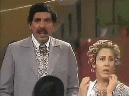 Professor Girafales and Dona Florinda react with surprise, followed by Dona Florinda slapping someone.