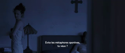 Claudia De Candia and Shawn Thomas Diefenbach in a dark room, discussing sports metaphors after intimacy.
