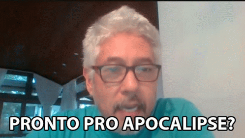 Rubens Oda asks if you're ready for the apocalypse, looking directly at the camera.
