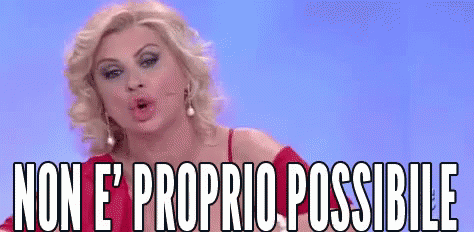 Italian TV personality Tina reacting emphatically with the phrase 'Non è proprio possibile!'