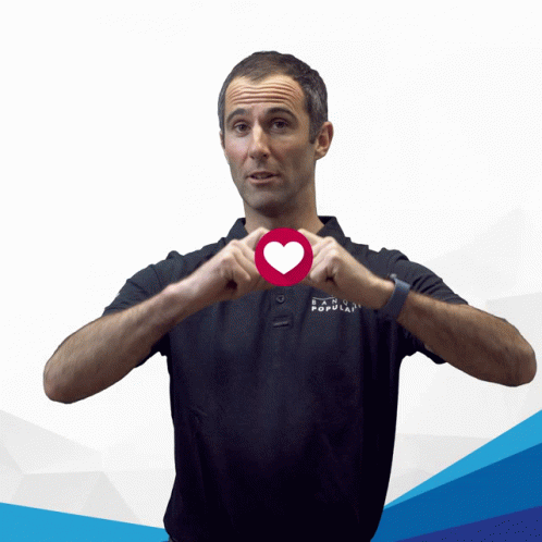 Armel Lecleach, wearing a Banque Populaire shirt, forms a heart with his hands, showing love and encouragement.