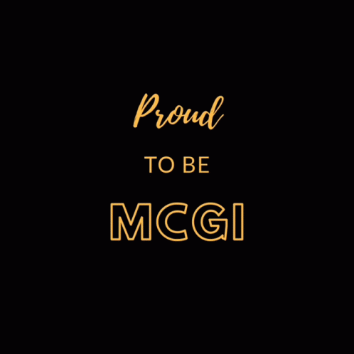 A vibrant graphic displaying the message 'Proud to be MCGI' with animated brush strokes on a black background.