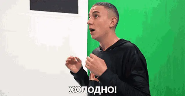 A black and white cat with the Russian word "ПРОХЛАДНО" (COOL) displayed, conveying indifference.