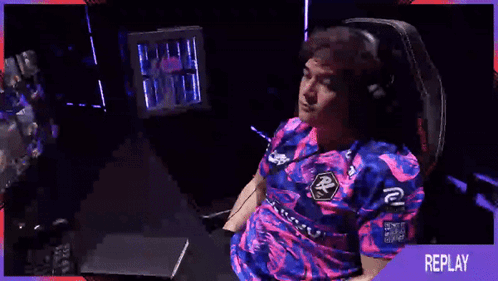 Prx Alecks, the Paper Rex coach, looking disappointed while wearing his team jersey and headphones.