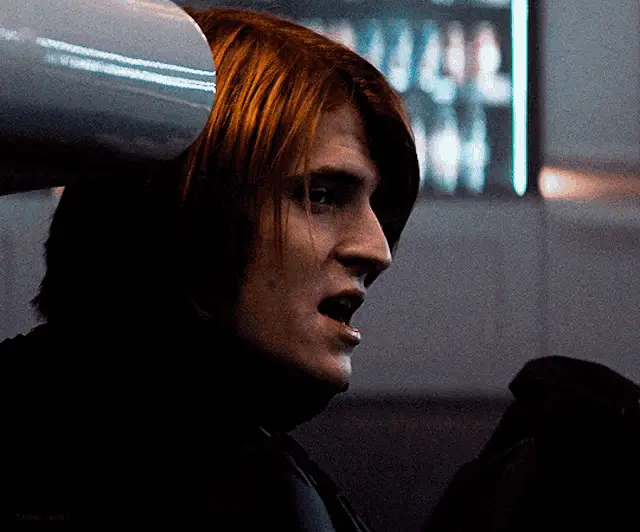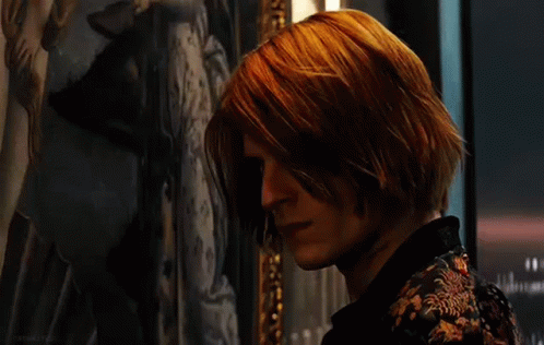 Сергей Разумовский (Мэйрон) с рыжими волосами стоит перед картиной.