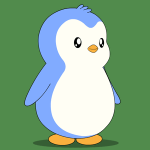 A cute Pudgy Penguin character waves and wishes everyone a Happy New Year 2025 on a green background.