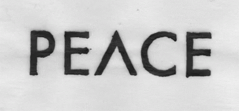 The word 'PEACE' transforms into a symbolic representation, featuring a heart and a peace sign, associated with Pueblaenpaz.