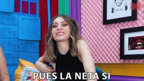 Dhasia Wezka emphatically states "Pues La Neta Sí" in a colorful studio setting.